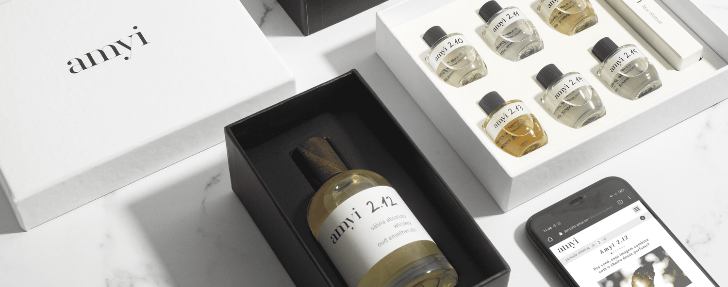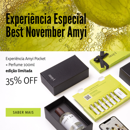 Escolha seu perfume depois de testar diferentes opções na sua pele. Na Experiência Amyi Premium seu perfume em 100ml já está incluso e chega até você em um click.