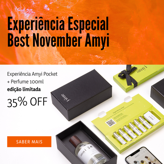 Escolha seu perfume depois de testar diferentes opções na sua pele. Na Experiência Amyi Premium seu perfume em 100ml já está incluso e chega até você em um click.