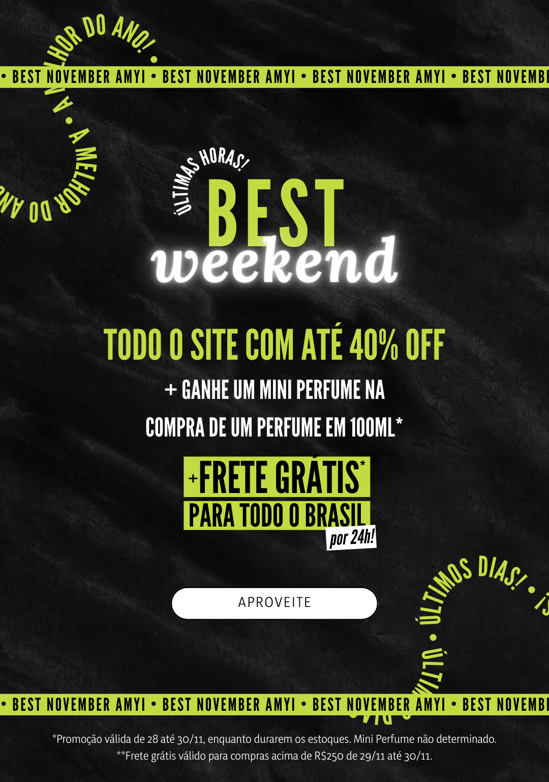 Responda o Quiz, descubra os perfumes que são a sua cara e ainda receba descontos ESPECIAIS na sua Experiência Amyi.