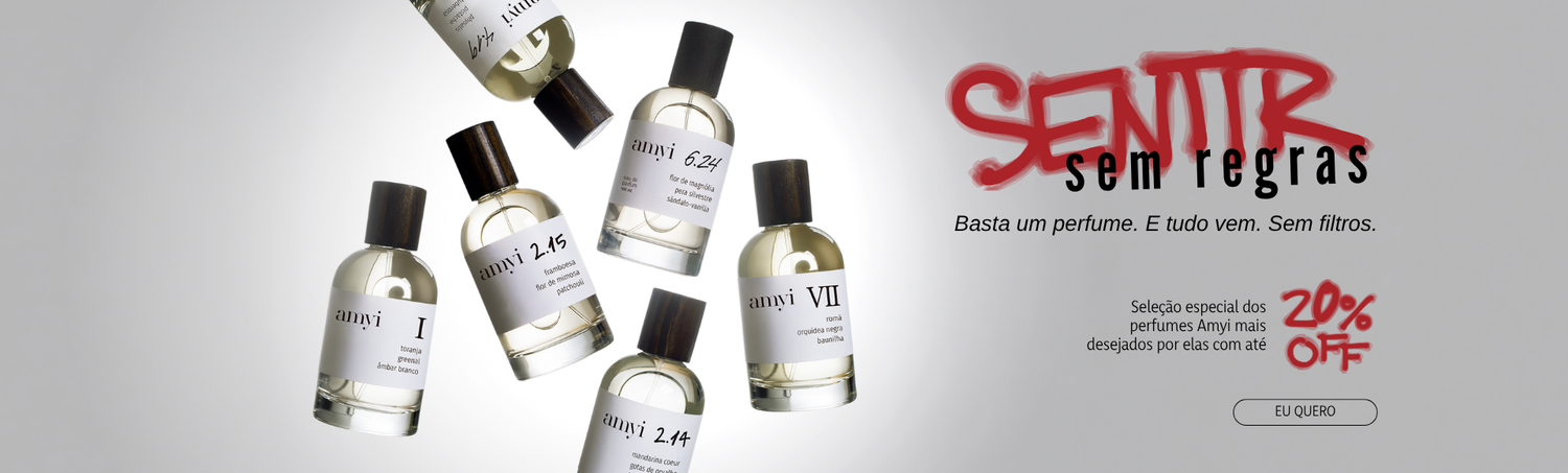 Escolha seu perfume depois de testar diferentes opções na sua pele. Na Experiência Amyi Premium seu perfume em 100ml já está incluso e chega até você em um click.