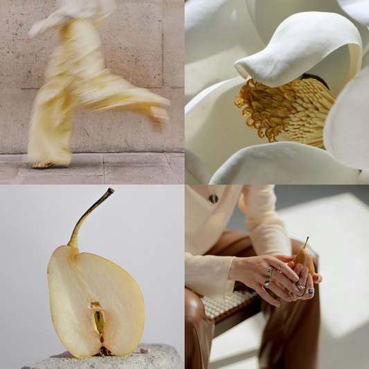 Levamos a rosa damascena por um caminho fresco e urbano, em contraste com o gerânio. Reimaginamos a magnólia com pera suculenta, criando uma energia viva e contemporânea.