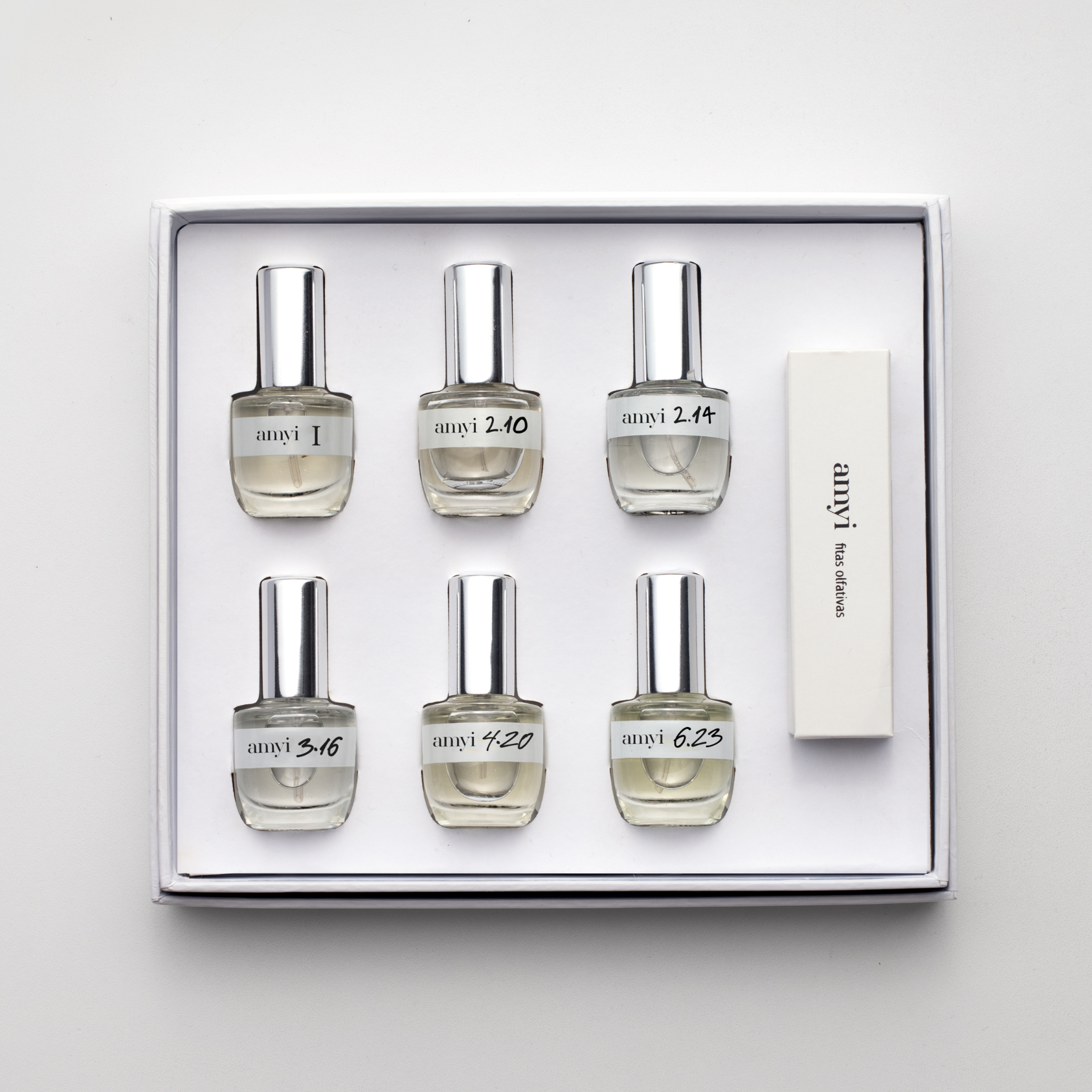 A Experiência Amyi Básica - Summer (edição limitada) contém seis mini perfumes (7ml) frescos e uma jornada sensorial e educativa online.