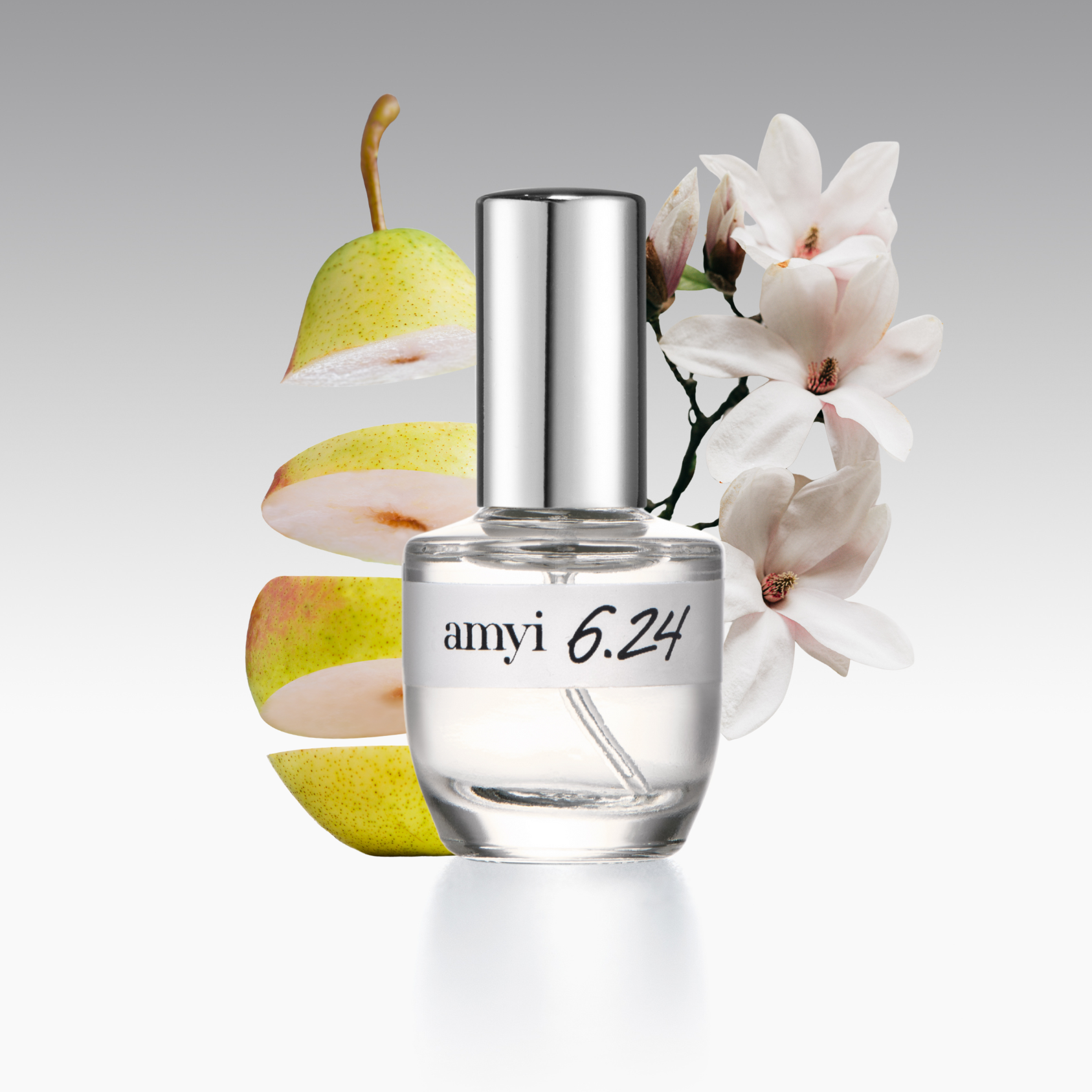 Amyi 6.24 é uma criação que destaca a magnólia em sua forma mais vibrante: cremosa, luminosa e cheia de presença. Acompanhada por pera silvestre suculenta e um fundo cremoso de pêssego, sândalo vanilla e patchouli.